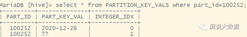 select * from PARTITION_KEY_VALS where part_id=100252;
