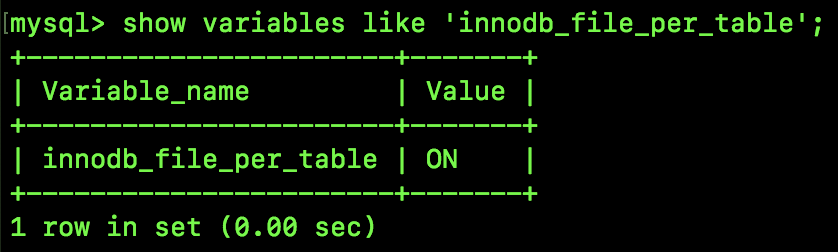 show variables like 'innodb_file_per_table';