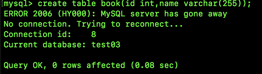 create table book2(id int,name varchar(255));