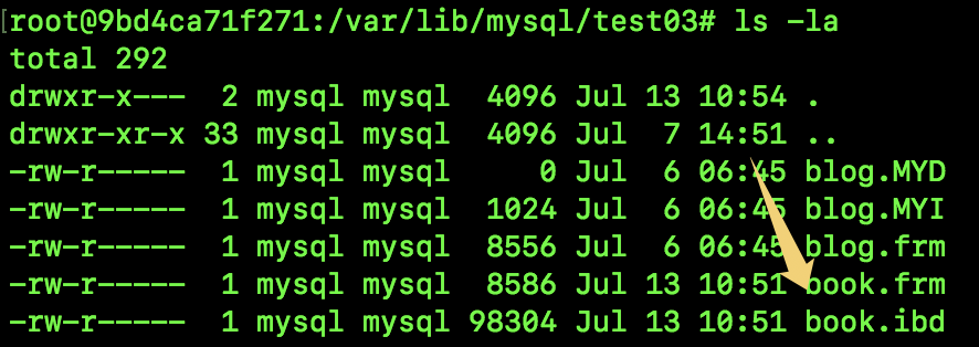 可以看到,当前表被存放在独立的 book.ibd