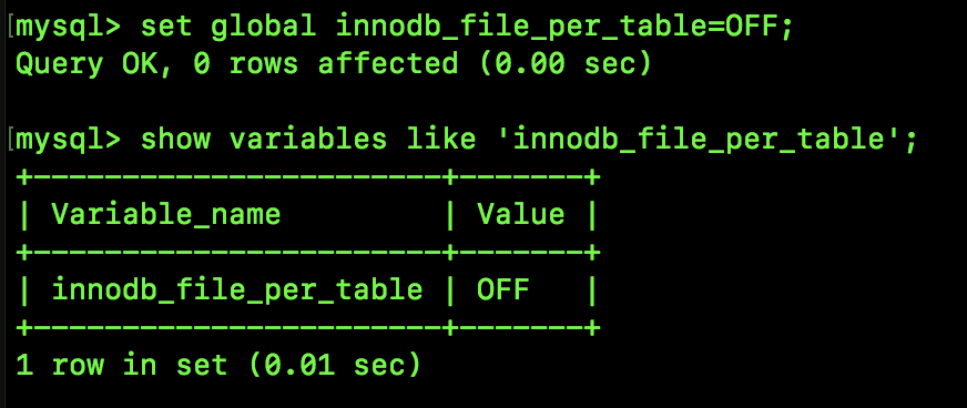 接下来我们执行如下代码,修改 innodb_file_per_table