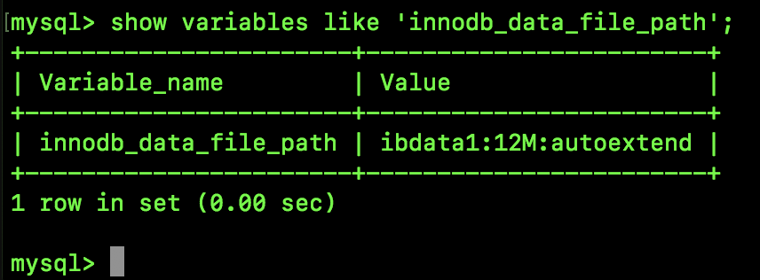 show variables like 'innodb_data_file_path';