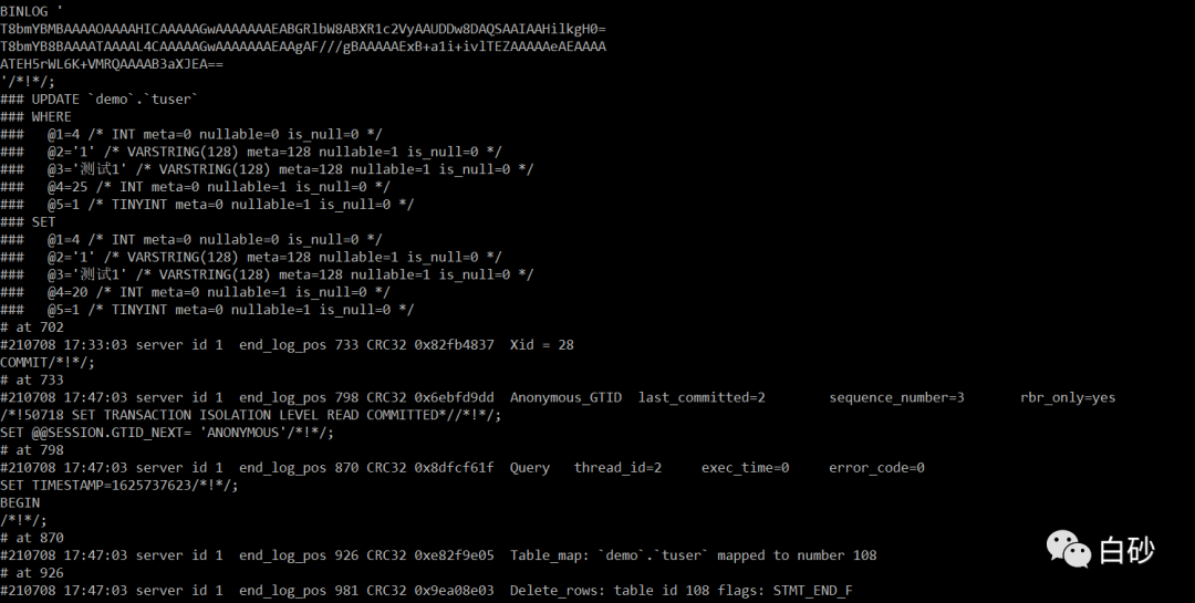 Row 格式不能直接进行查看详细信息的,需要借助mysqlbinlog工具进行解析和查看内容。语法是: