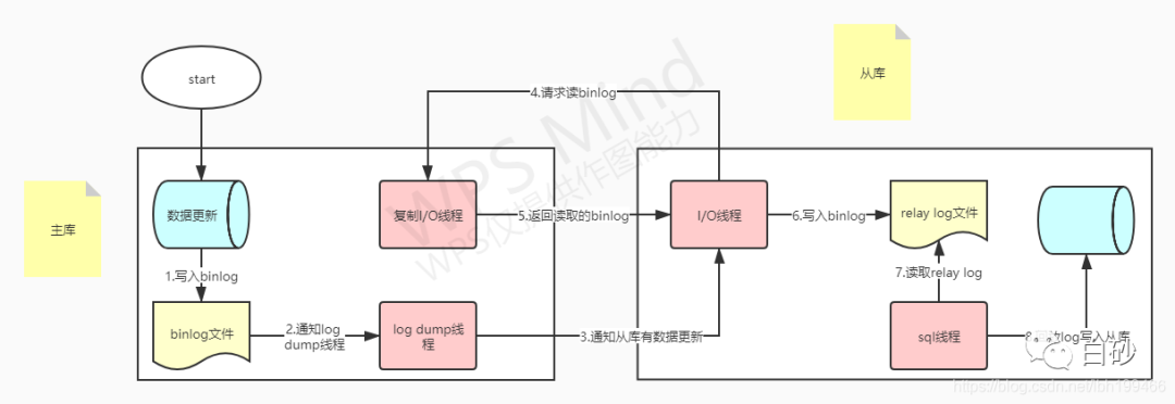 主库会生成一个 log dump 线程,用来给从库 I/O 线程传 Binlog 数据。