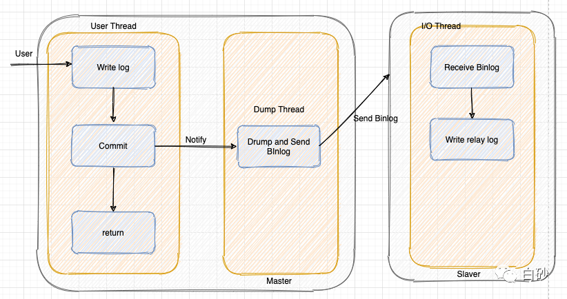 MySQL 主从复制中主要有三个线程,master(binlog dump thread)、slave(io thread, sql thread)