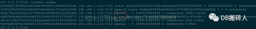 [root@liuyazhuang01 7111]# /usr/local/redis3/bin/redis-cli -c -p 7111 127.0.0.1:7111> cluster nodes