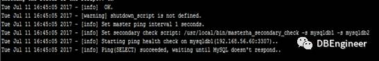 #/usr/local/bin/masterha_check_repl --conf=/etc/masterha/app1.cnf … Checking the Status of the script.. OK Tue Jul 11 16:39:17 2017 - [info] OK. Tue Jul 11 16:39:17 2017 - [warning] shutdown_script is not defined. Tue Jul 11 16:39:17 2017 - [info] Got exit code 0 (Not master dead). MySQL Replication Health is OK. |