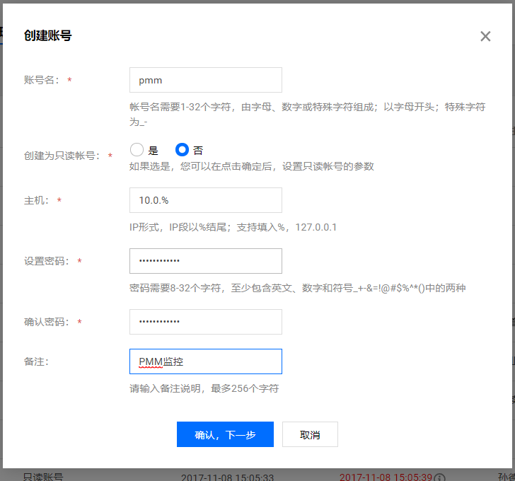 # 填写数据库信息。第二项是PMM页面显示的名字,可以自定义格式。
