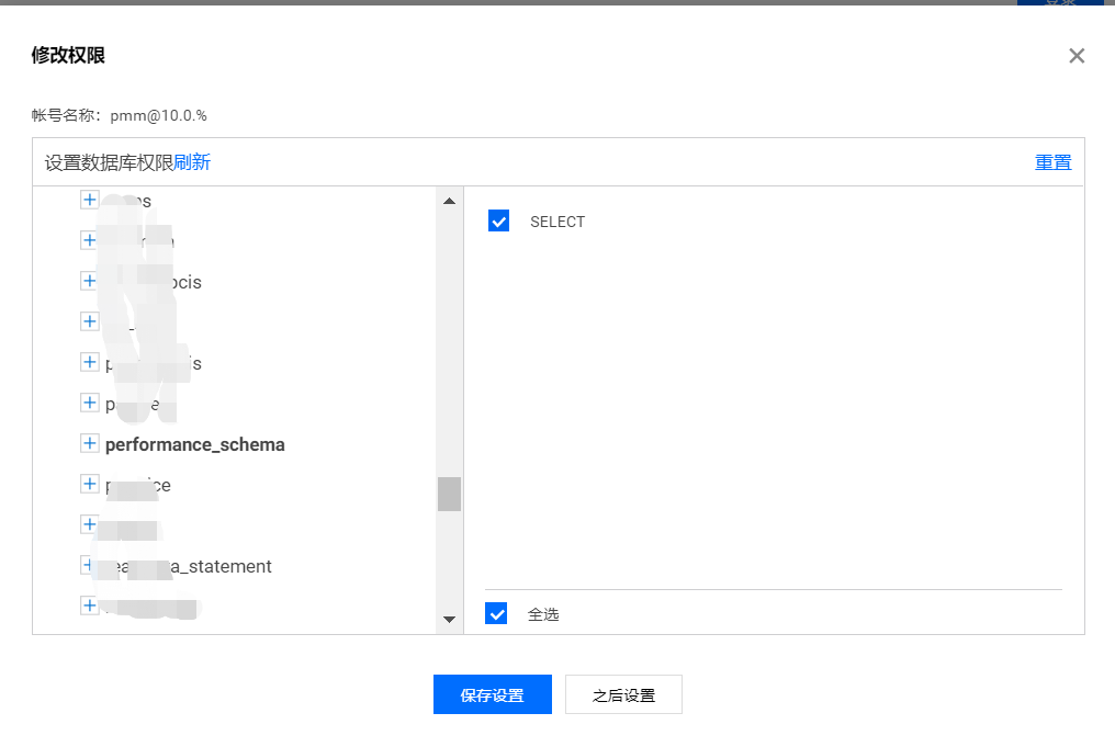 GRANT SELECT, UPDATE, DELETE, DROP ON performance_schema.* TO 'pmm'@'%';