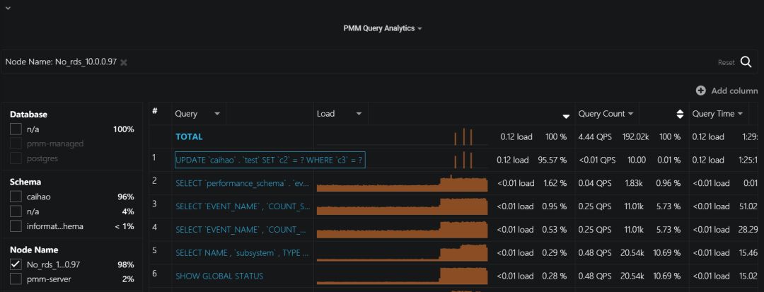 [root@localhost caihao]# pmm-admin add mysql:queries --host 10.5.86.81 --user pmm --password *** rds-10.5.86.81