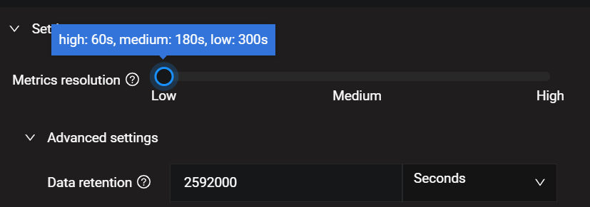 这里我们主要调整下数据采集频率 和 监控数据保留时间。