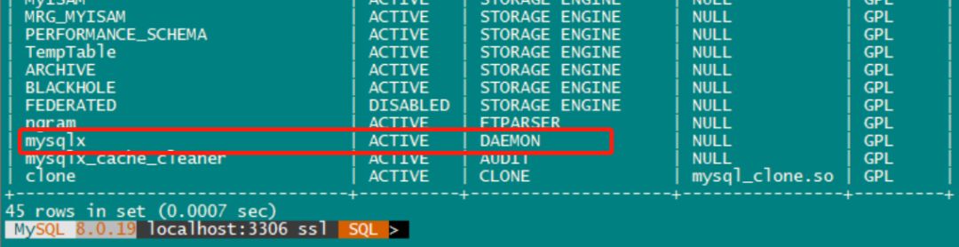 从MySQL 8.0开始,X插件在MySQL Server中默认是启用的: