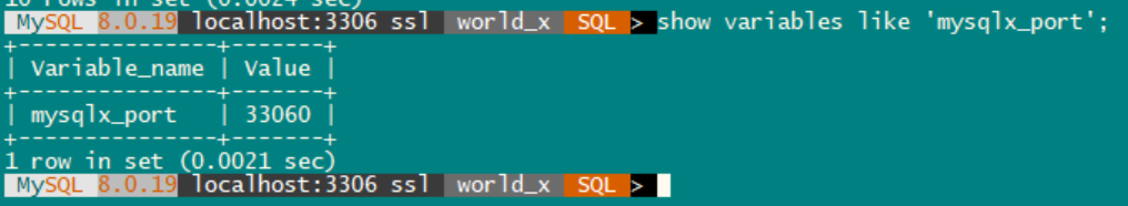 X协议的端口可以在数据库参数中mysqlx_port定义: