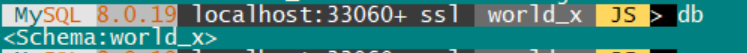 注意,这里连接数据库不是用默认的3306端口,而要使用MySQL Shell的X协议33060端口连接到数据库,这样才可以使用基于X协议的文档存储功能。