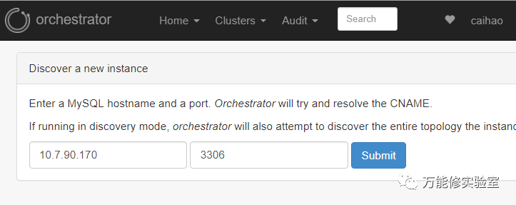 "ListenAddress": ":3333", --供WebGUI访问的端口"AuthenticationMethod": "basic", --身份验证类型。可选如下参数:1 "" 无认证,2 "basic" 用户密码认证3 "multi" 类似basic,但也接受用户readonly使用任何密码。readonly用户被允许查看所有内容,但无法通过API来执行写入操作(such as stopping a replica, repointing replicas, discovering new instances etc.)"HTTPAuthUser": "caihao", --身份验证用户名"HTTPAuthPassword": "caihao", --身份验证密码"MySQLTopologyUser": "orc_client", --client 用户名密码"MySQLTopologyPassword": "orch_client_pass", --client 用户名密码"HostnameResolveMethod": "none", --所有数据库使用IP地址识别【默认是主机名识别,而且要唯一】"MySQLHostnameResolveMethod": "","MySQLOrchestratorHost": "127.0.0.1", --Orchestrator Server DB的配置信息"MySQLOrchestratorPort": 3306,"MySQLOrchestratorDatabase": "orchestrator","MySQLOrchestratorUser": "orc_server","MySQLOrchestratorPassword": "orc_server_pass","RecoverMasterClusterFilters": ["*"], --定义哪些集群可以自动failover/recover"RecoverIntermediateMasterClusterFilters": ["*"],"PostMasterFailoverProcesses": --指定故障转移后要执行的操作。(可以多次指定)。如稍后所述运行故障转移脚本。