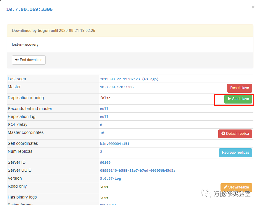 切换完成。但是原主库状态是红色,因为切换后,需手动start slave继续同步