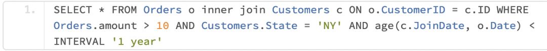 它将会产生两个 scanNode,一个负责 Customers 表,另一个负责 Orders 表,它们都能处理各自节点涉及的表的过滤条件,然后由更高层的join节点来处理同时需要两张表数据才能处理的过滤条件。