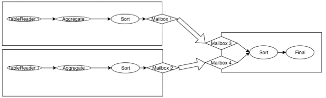 节点实现了ScheduleFlows RPC,它接受一组流、设置输入输出mailboxes、创建本地处理器并开始执行。为了允许生产者和消费者在不同时间启动,ScheduleFlows会为所有输入和输出流创建命名邮箱Mailboxes。