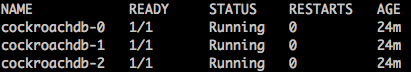 通过kubernetes,检查是否成功创建CockroachDB节点。