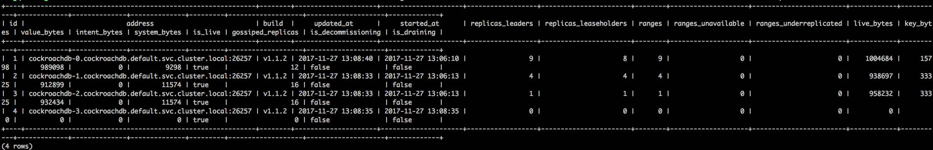 kubectl scale statefulset cockroachdb --replicas=4