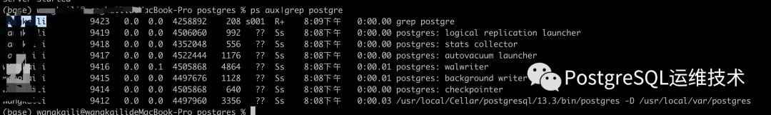 注:/usr/local/var/postgres/是集群的DATA目录。