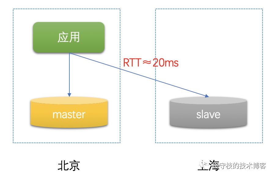这个问题并非无关紧要,特别是在公司有多个数据中心的情况下,尤其需要注意。笔者曾经遇到过有业务开发同学,应用部署在北京,数据库集群在北京和上海都有部署,如下图: