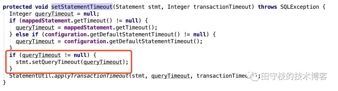事实上,mybatis底层也是也只是我们我们配置的值,通过调用Statement.setQueryTimeout方法进行设置。