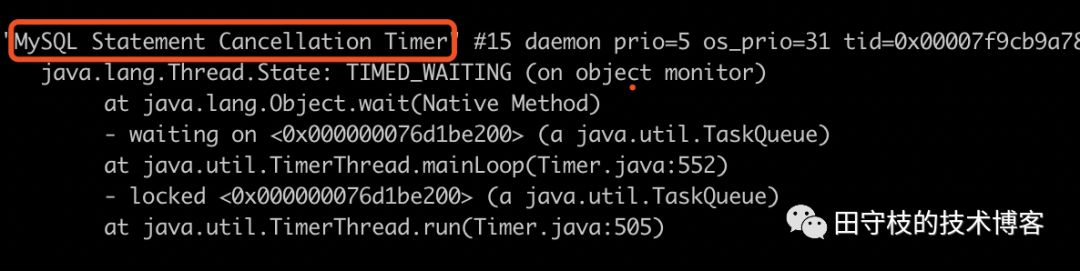 可以看到这里包含了一个名为Mysql Statement Cancellation Timer的线程,这就是用于控制sql执行超时的定时器线程。在高并发的情况下,大量的sql同时执行,如果设置了statement timeout,就会出现需要这样的线程。