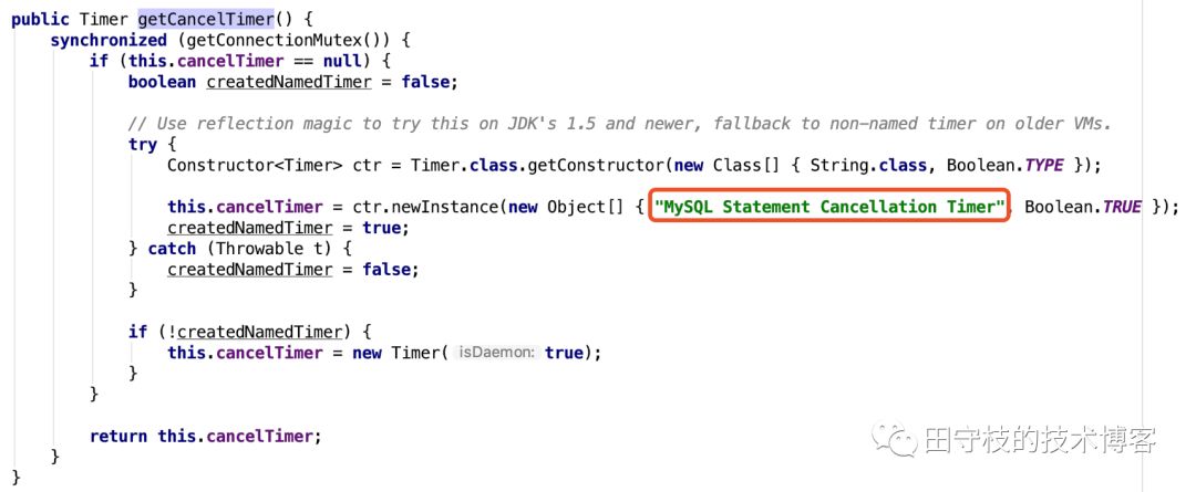 这里我们看到ConnectionImpl内部,提供了一个名为MySQL Statement Cancellation Timer的定时器。