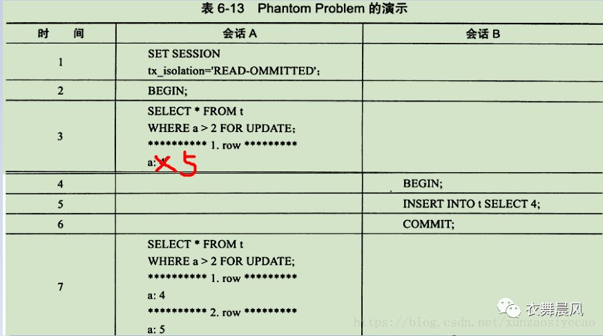 Next-Key Locking机制来避免Phantom Problem (幻像问题)。这点可能不同于与其他的数据库,如Oracle数据库,因为其可能需要在SERIALIZABLE的事务隔离级别下才能解决 Phantom Problem。