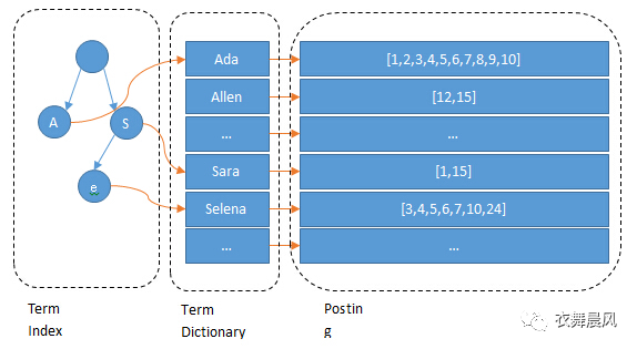 这棵树不会包含所有的term,它包含的是term的一些前缀。通过term index可以快速地定位到term dictionary的某个offset,然后从这个位置再往后顺序查找
