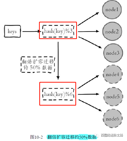 当节点数量发送变化时,如扩容或收缩节点,数据节点映射关系需要重新计算,会导致数据的重新迁移。