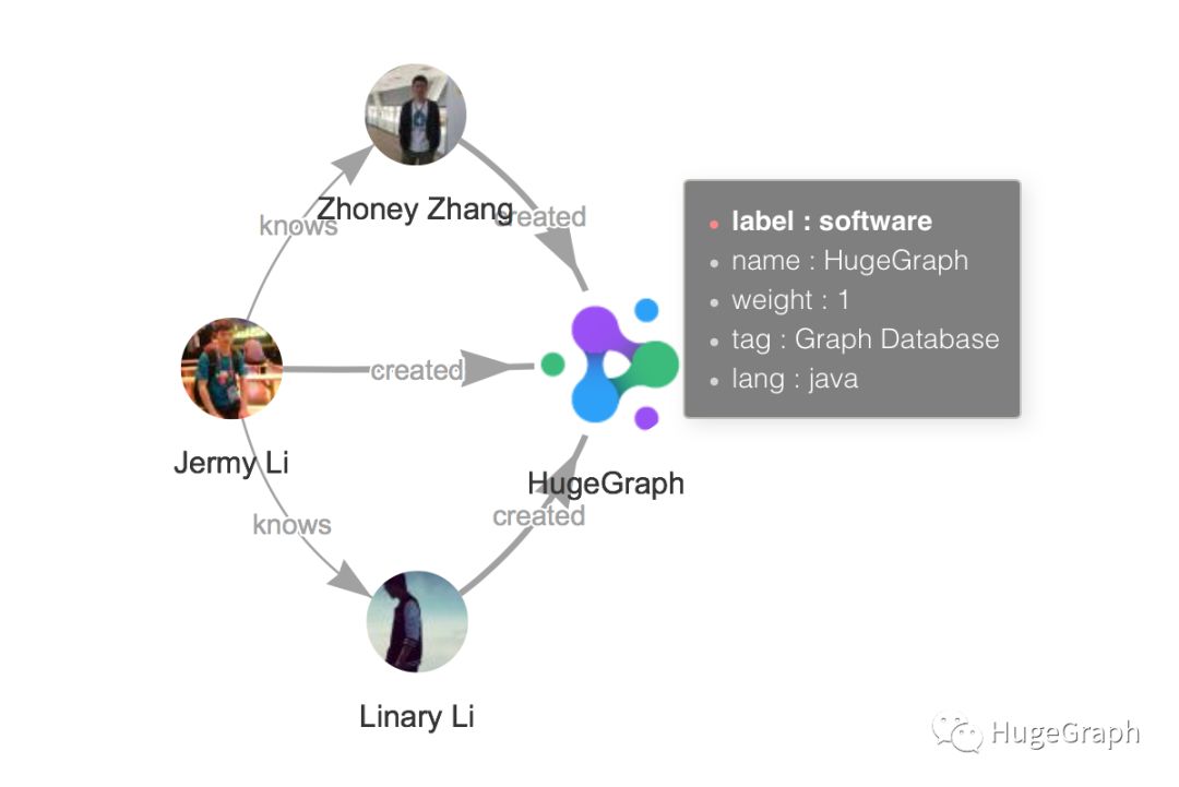 包括4个顶点:3个“人”顶点、一个“软件HugeGraph”顶点。