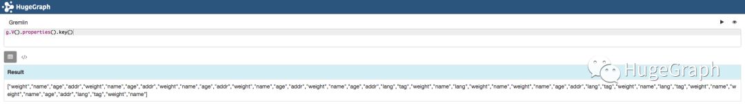 :// 查询所有顶点的属性名称g.V().properties().key()