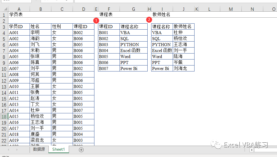 strSQL1 = "Select a.*,教师姓名 From " & strSource1 & "a Inner Join " & strSource2 & "b On a.课程名称=b.课程名称"strSQL = "Select 学员ID,姓名,性别,课程名称,教师姓名 From " & strSource & "a Inner Join (" & strSQL1 & ")b On a.课程ID=b.课程ID Order By 学员ID"