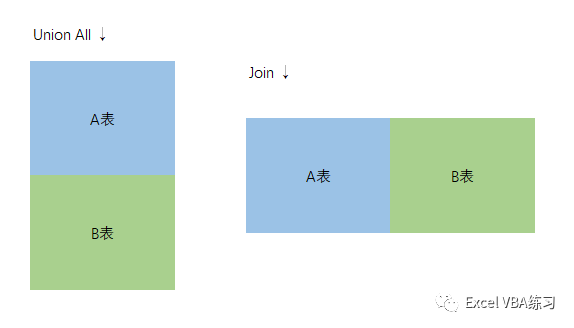 Union All 将两个表合并到一个工作表中,且不会对这些做任何的更改,值得需要注意的是,两个表的列字段数目必须相同