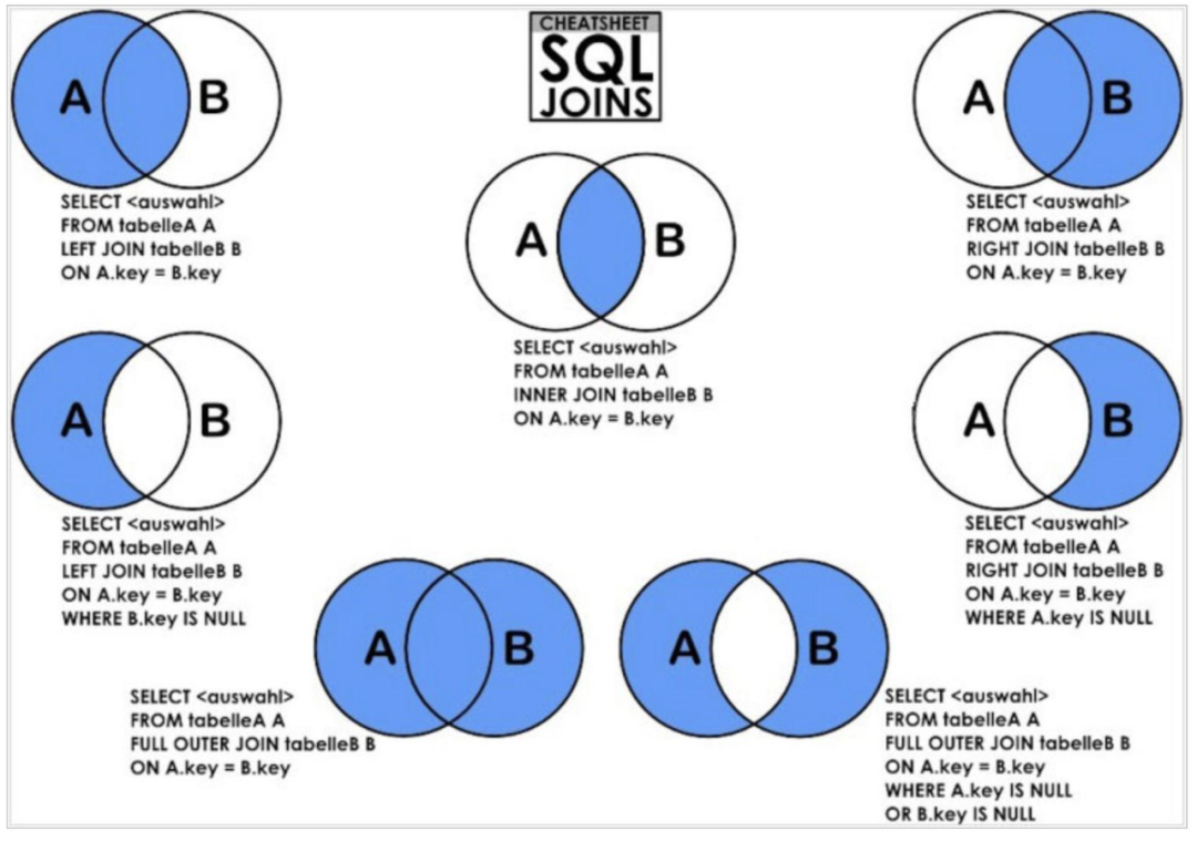 一张图看懂SQL JOIN的各种用法