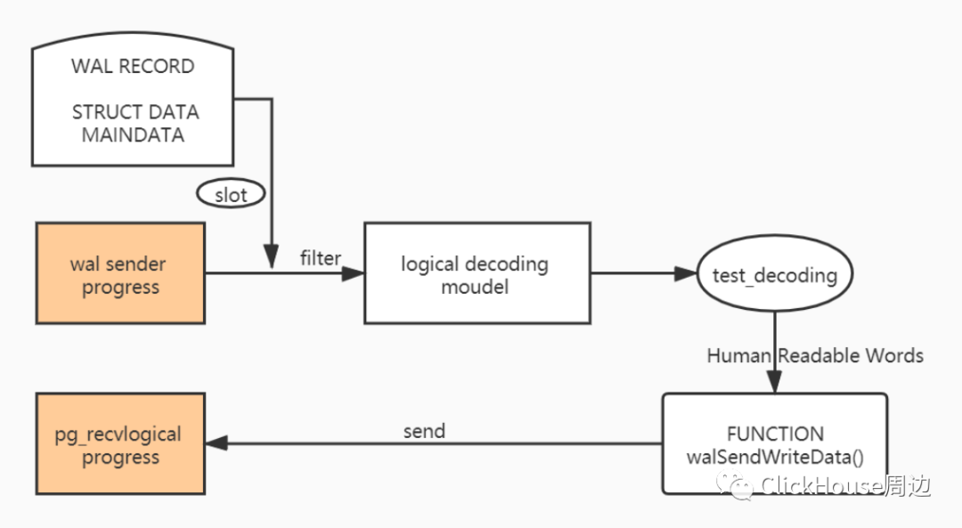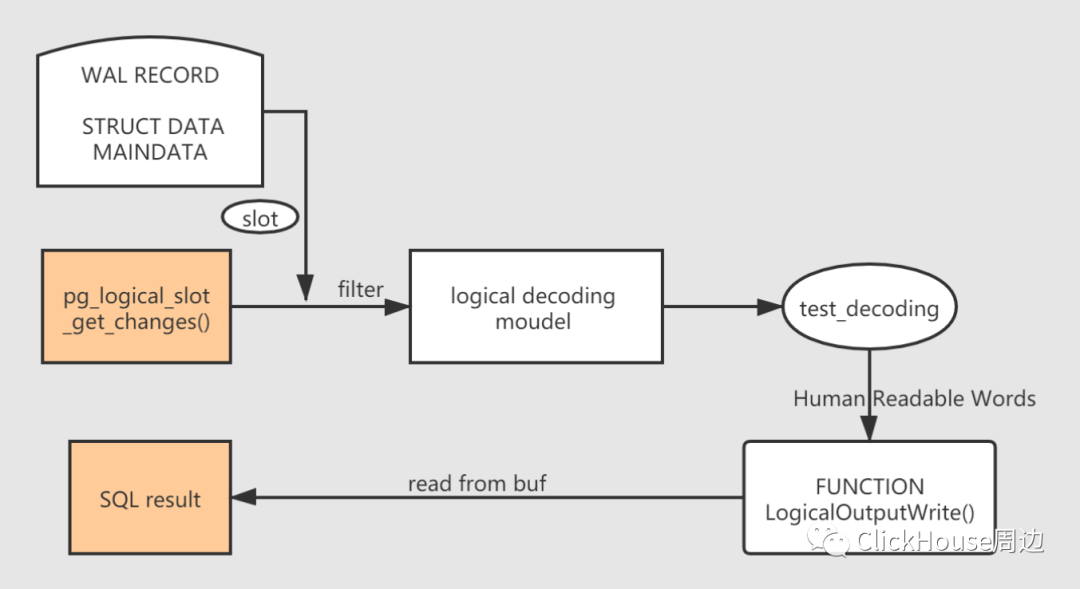 test_decoding是Postgres现有的一个plugin,它的主要作用是将筛选过后的wal日志,转化为人们可以理解的形式。现在PG内部有两种方法可以使用plugin。如下是对这两种情况的简单说明。详情请查看官方文档。