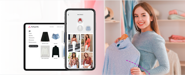 用户可以将自己的衣服拍照上传到虚拟衣柜,并基于上传的图片找到商品库中与之最相似的同类商品图。