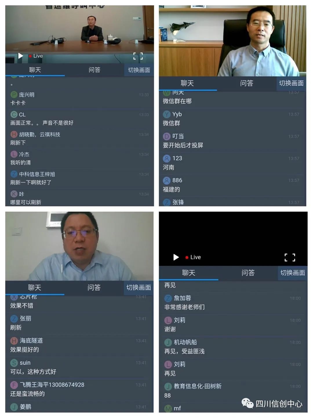 为使培训收到积极成效,中心创建8个200人的微信群进行实时互动,对演讲内容展开了热烈的讨论。来自全国各地各行业的留言达到了接近4000条,其中向主讲人提问信息达到了280余条。参与人数的激增、分布地区的广泛、互动交流的热烈说明信创战略产业得到了越来越广泛的支持,展开广泛学习交流的需求越来越迫切。