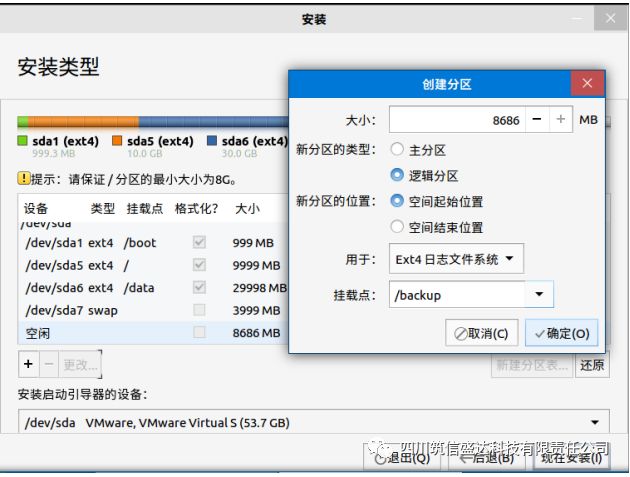 /bacup(数据备份分区) | 逻辑分区;其余分区分完剩余空间可作为数据备份分区 |