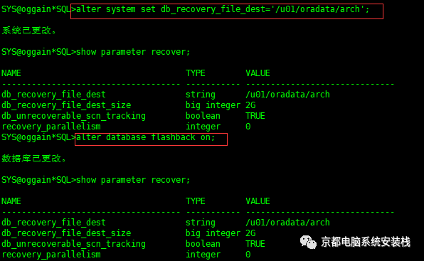指定闪回空间大小:ALTER SYSTEM SET db_recovery_file_dest_size=2g;指定闪回恢复区位置:alter system set db_recovery_file_dest='/u01/oradata/arch';开启数据库闪回:alter database flashback on;