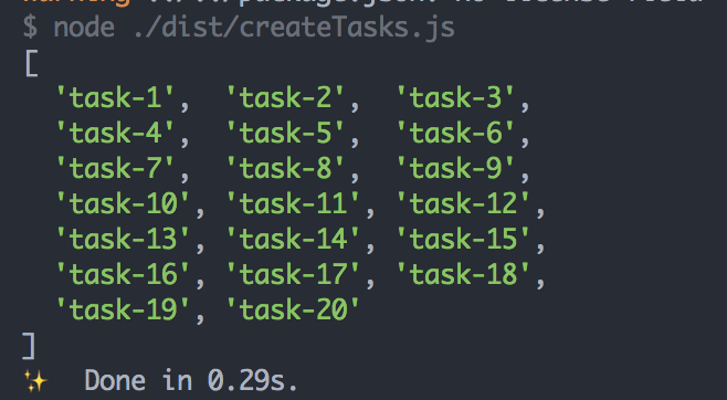 为了在 Redis 中创建任务队列,我们可以单独写一个 createTasks.ts 的脚本,用于往队列中塞入自定义的任务。