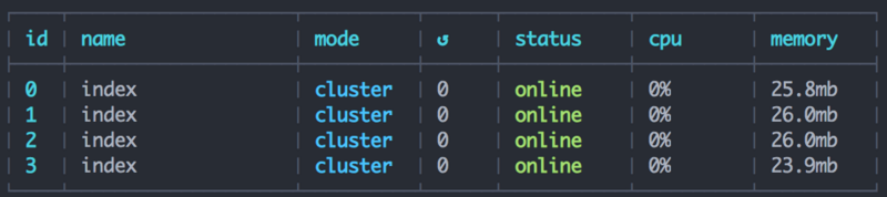 最后,我们使用 PM2 启动 4 个进程,来试着跑一下整个项目: