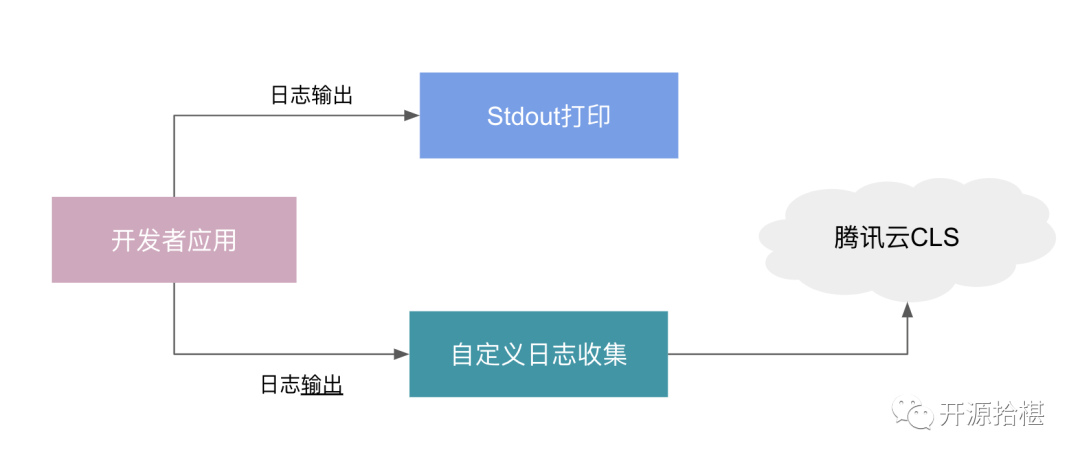 如上图,开发者可以选择通过自定义日志收集模块达到上报日志到腾讯云CLS。