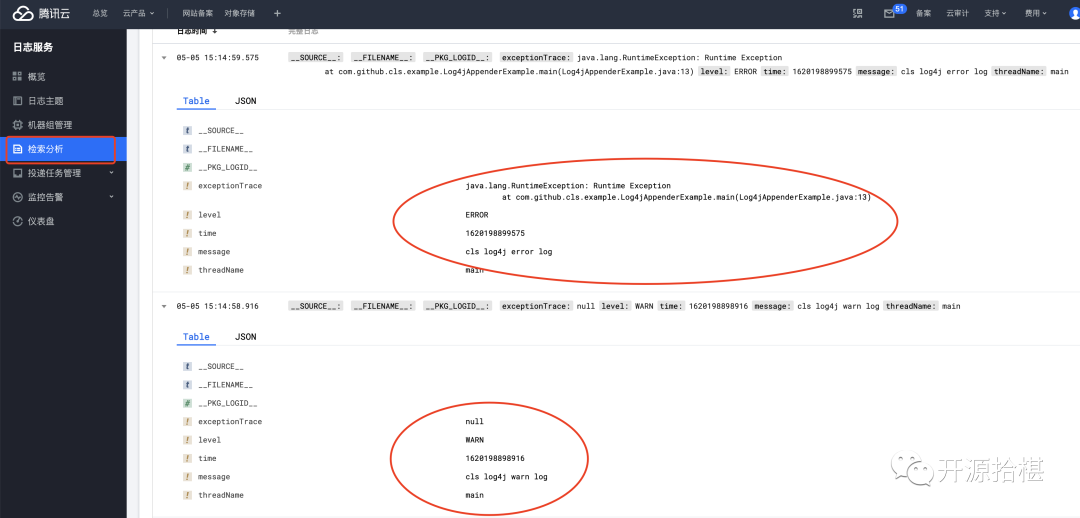10 登陆CLS控制台切换到日志检索菜单,如下图