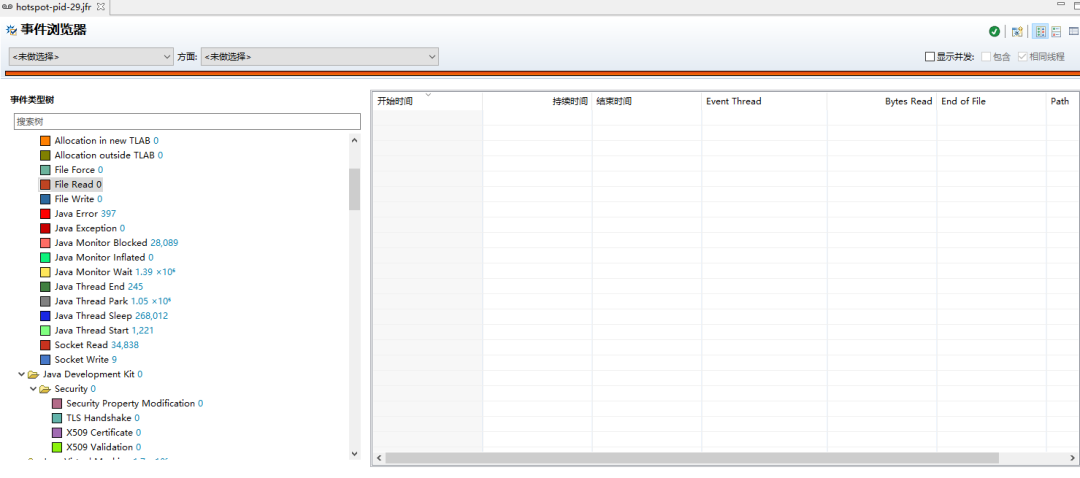 接着,我们查看 IO 相关的事件,也并没有发现业务相关的阻塞读: