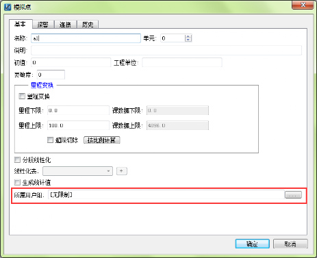 设置所属用户组后,在客户端以及外部程序中只有登录了属于该用户组的用户才能够操作此数据库点。提供函数IsUserPermission(User,Secu)判断用户是否属于数据库点指定的可访问用户组。