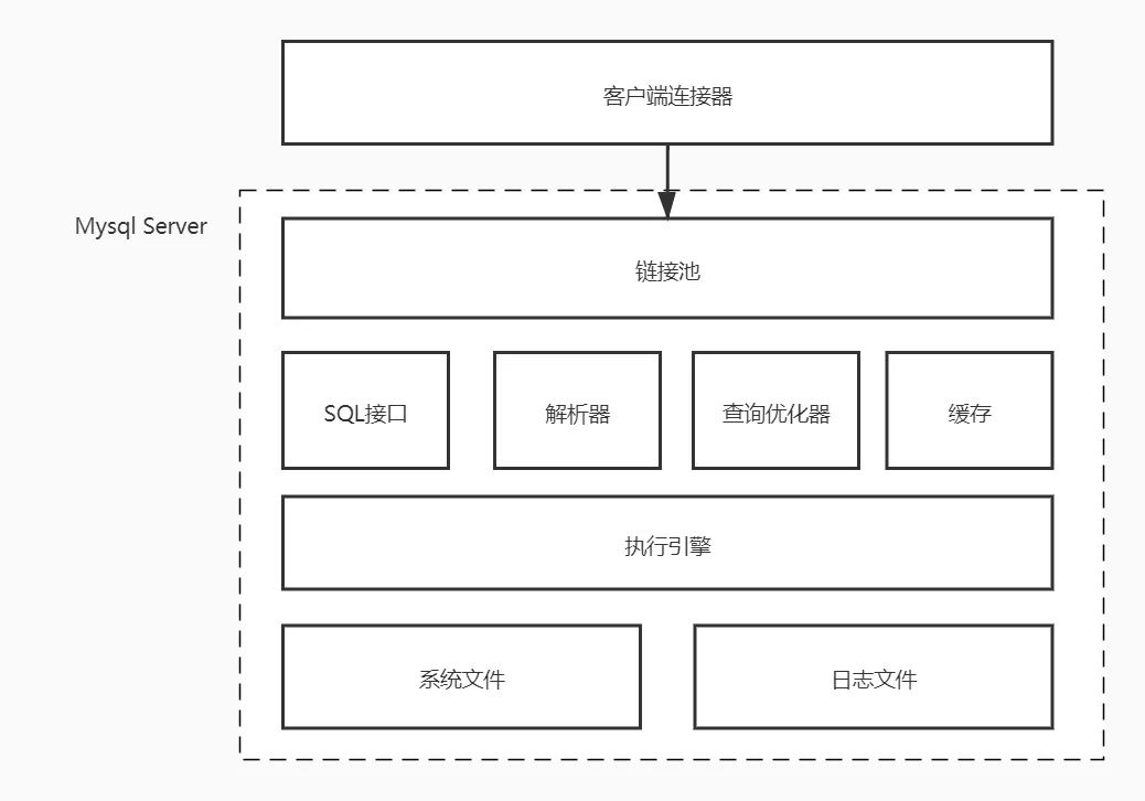 上面是MySQL简化版的体系结构图,可以看到自顶向下主要分成了链接池、SQL接口、解析器、查询优化器、缓存、执行引擎、系统文件和日志文件。系统文件和日志文件共同组成了系统文件层,是Mysql实现数据持久化、MVVC、主从同步等功能的重要一层。