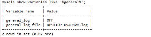 用来记录用户的所有操作,包括启动和关闭 MySQL 服务、更新语句和查询语句等,默认情况下是关闭,可以通过`show variables like '%general%'`查看。